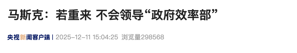 馬斯克在9日播出的播客節(jié)目中接受“政府效率部”前任發(fā)言人凱蒂·米勒采訪,被問及“如果重來,是否會領(lǐng)導(dǎo)‘政府效率部’”。馬斯克說:“不,我不會這樣做。我想我總體上會在我的公司工作,而不是領(lǐng)導(dǎo)‘政府效率部’。這樣他們(反對者)就不會燒車了。”