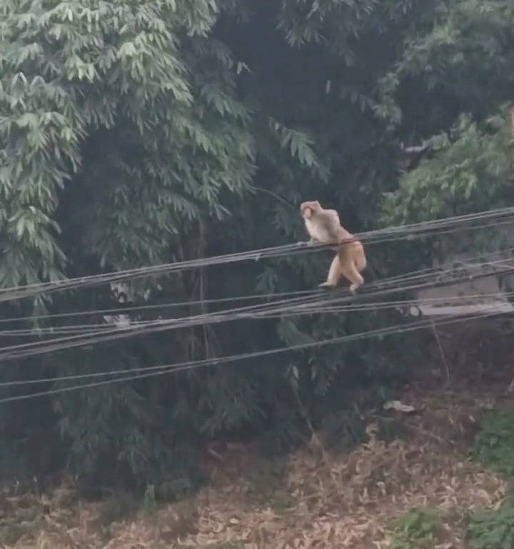 猴子在線纜上攀爬(網(wǎng)友視頻截圖)
