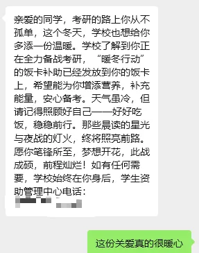 “這些補貼不需要學生本人提前申請。”金捷稱,補貼資金直接打到正在備戰考研的學子飯卡當中,只要是在學校能刷飯卡消費的地方都可以使用,比如校內超市、澡堂、食堂等。