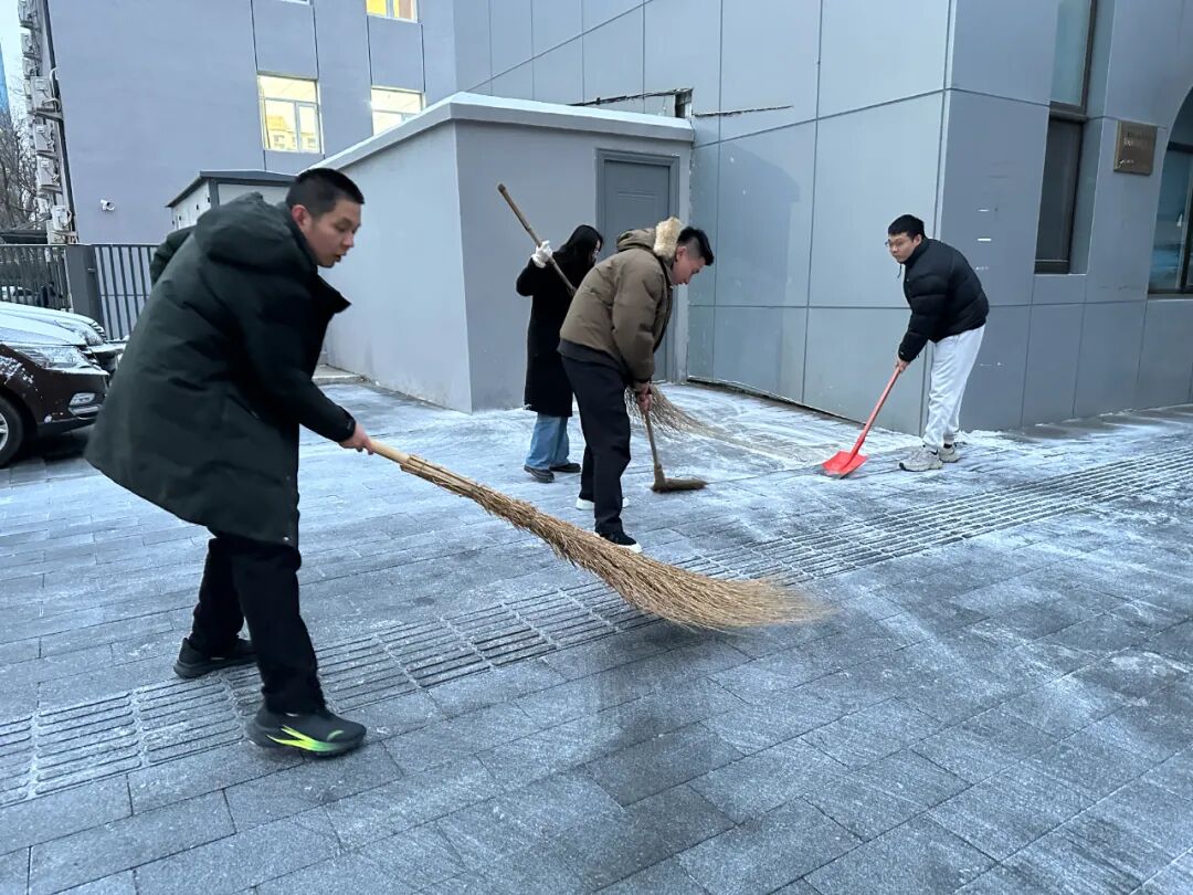 通州區體育局工作人員在單位門前的“掃雪責任段”進行掃雪。