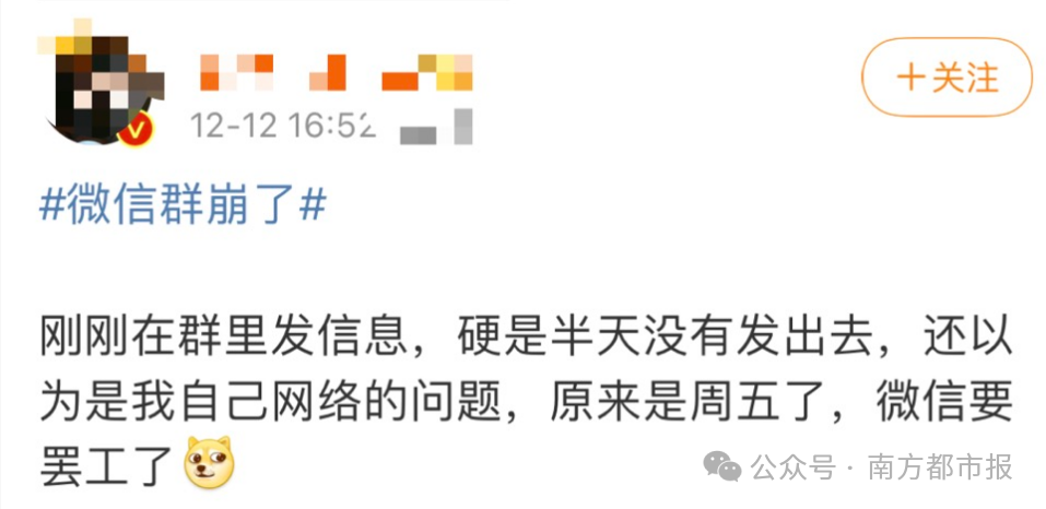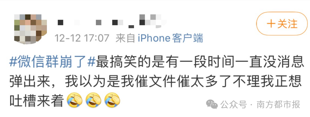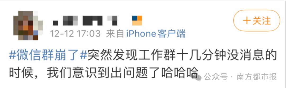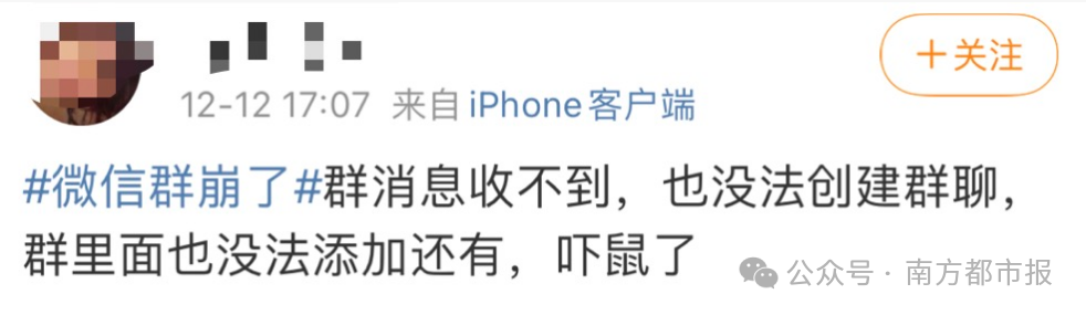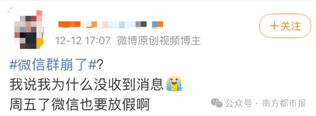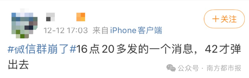 12月12日下午,大量用戶反映微信群消息無法發送或同步,相關話題登上熱搜,引發“微信群崩了”的集中討論。