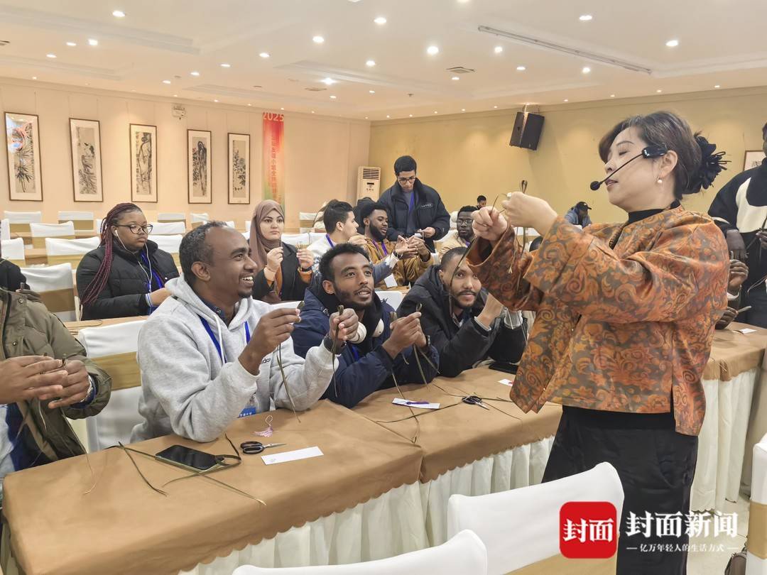 告別了前一日的科技硬核,非洲留學(xué)生們轉(zhuǎn)身投入非遺的懷抱,在指尖互動中感受四川人文的獨特魅力。
