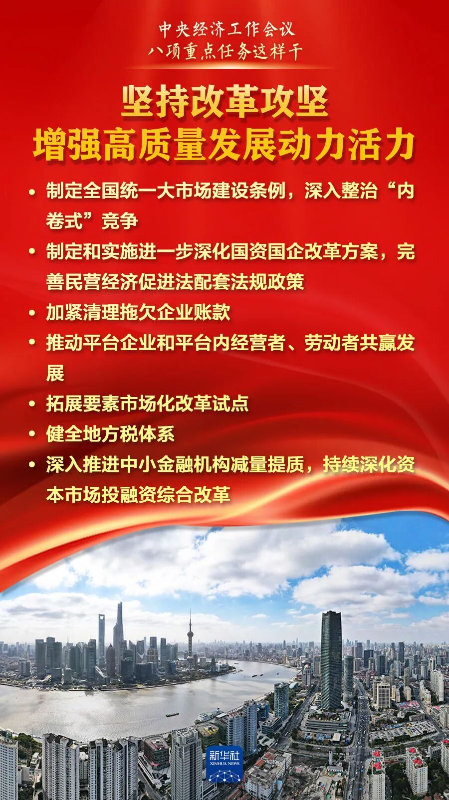 中央經(jīng)濟(jì)工作會(huì)議12月10日至11日在北京舉行。會(huì)議確定,明年經(jīng)濟(jì)工作抓好八項(xiàng)重點(diǎn)任務(wù)。跟隨這組海報(bào),一起看這八項(xiàng)重點(diǎn)任務(wù)怎么干。