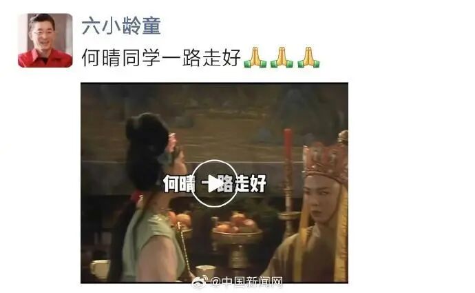 何晴去世消息傳出后,中新網(wǎng)報(bào)道稱,曾與其在《西游記》合作的六小齡童表示,何晴是他在浙江昆劇團(tuán)學(xué)員班學(xué)藝時(shí)的小班同學(xué)。“我們永遠(yuǎn)懷念她。天堂沒(méi)有病痛,何晴同學(xué)一路走好!”報(bào)道稱,六小齡童還在朋友圈發(fā)文悼念何晴。