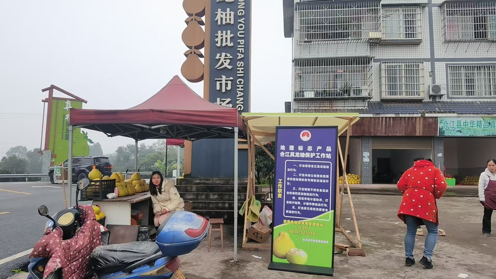 真龍鎮(zhèn)上隨處可見的真龍柚售賣點。