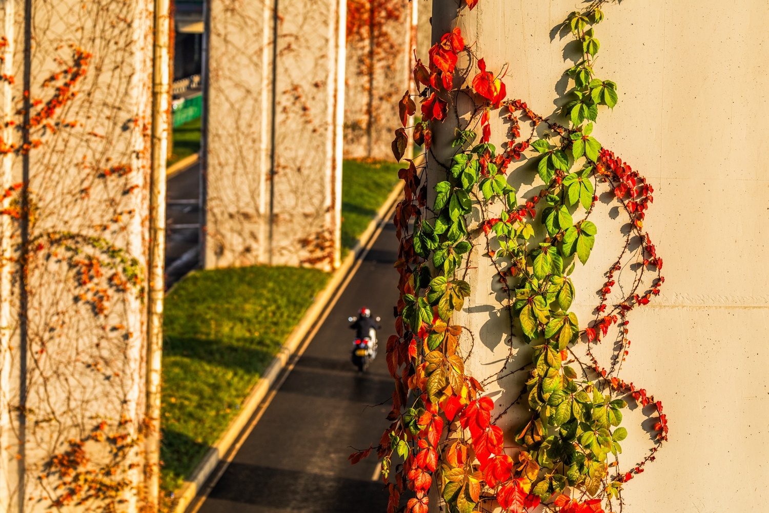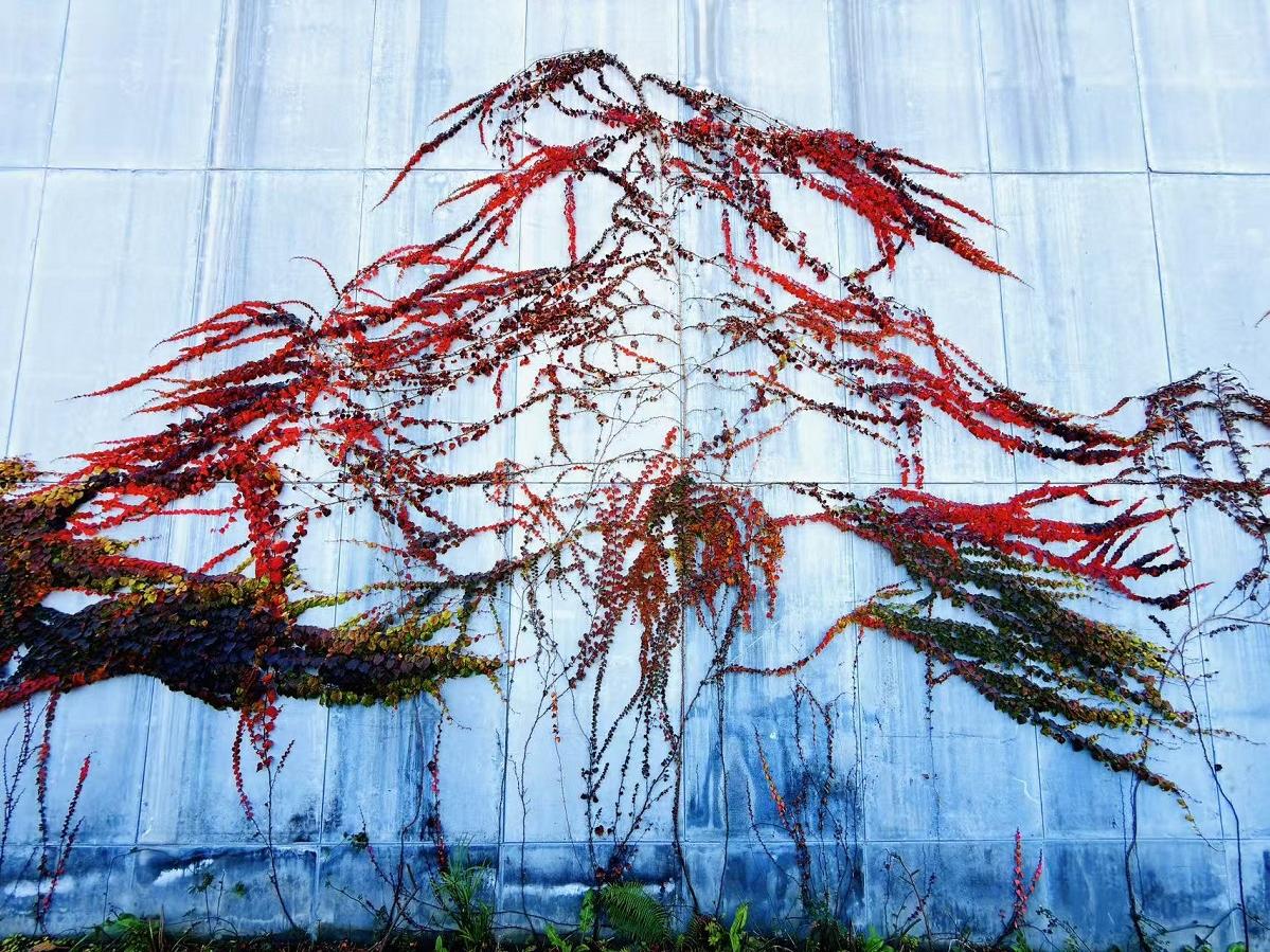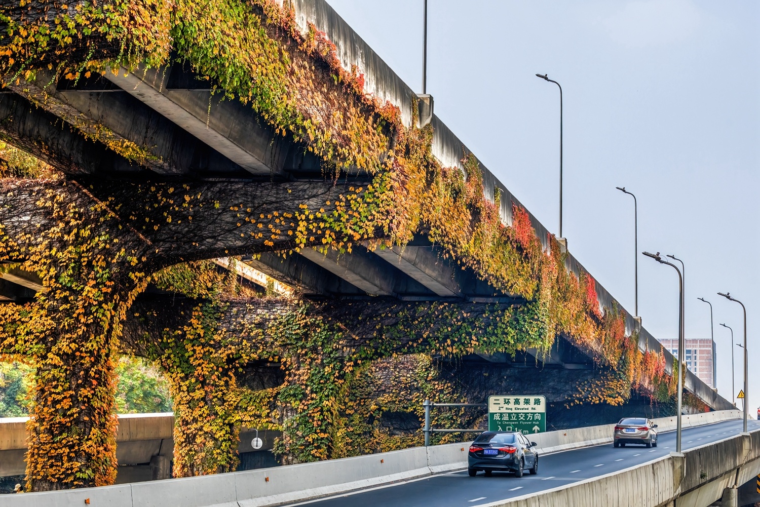 成都二環高架的爬山虎也太會了吧!從綠藤仙蹤變成紅葉瀑布,通勤路直接美成風景畫~