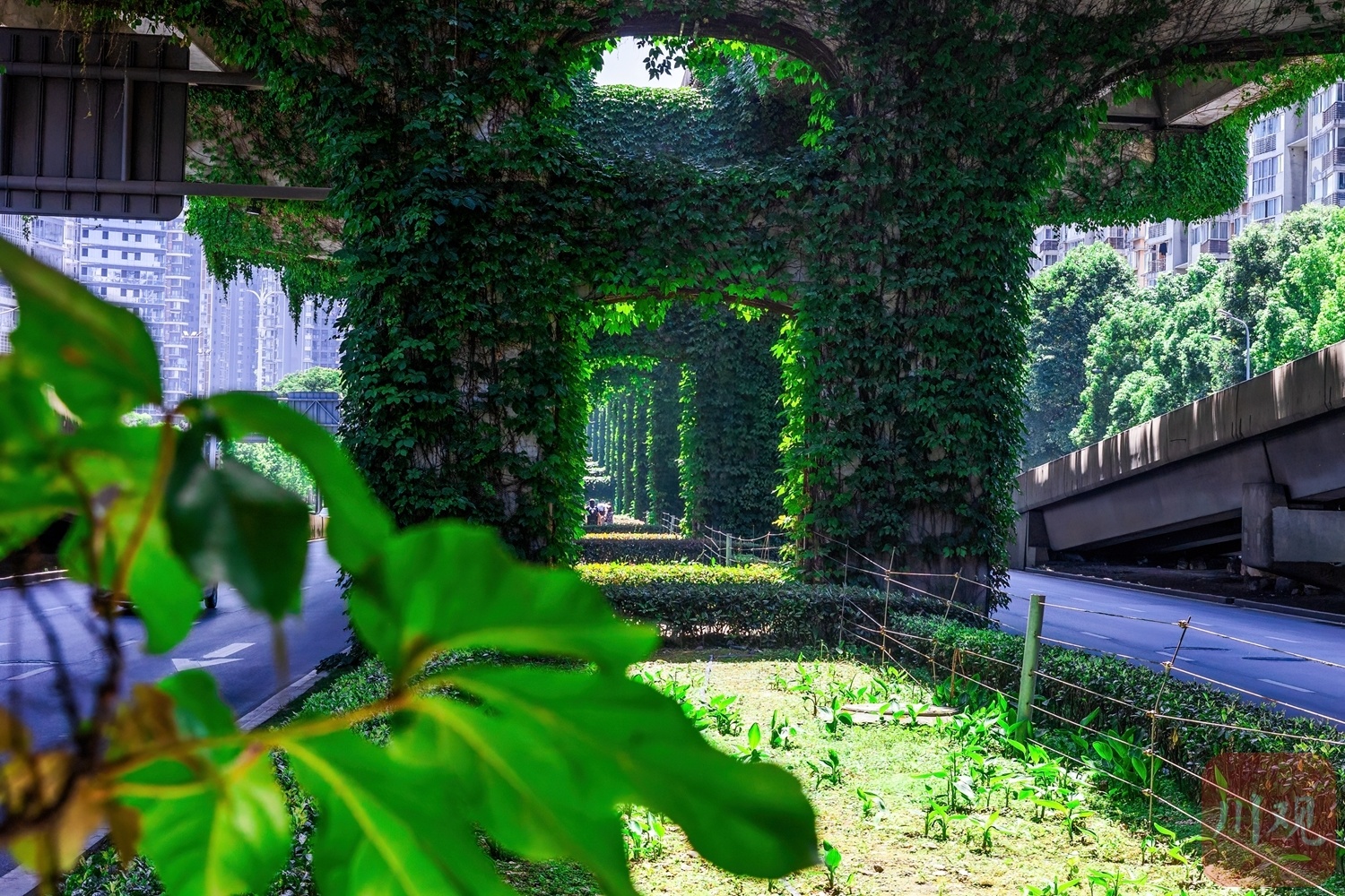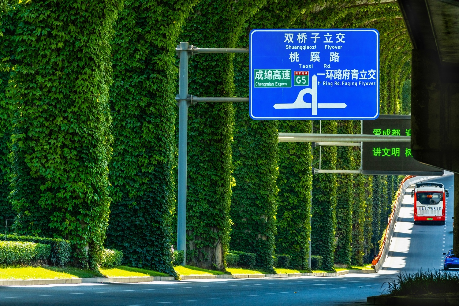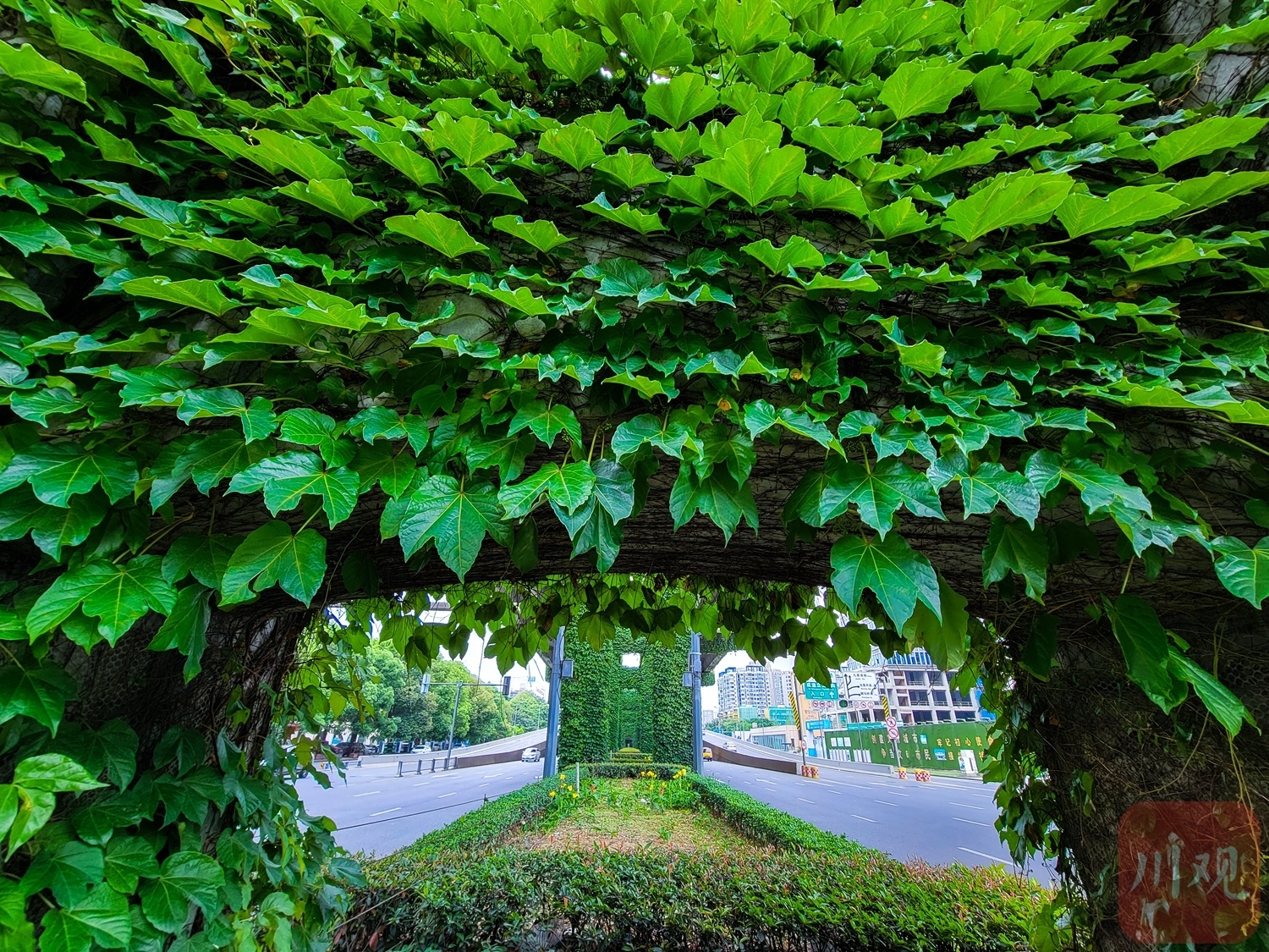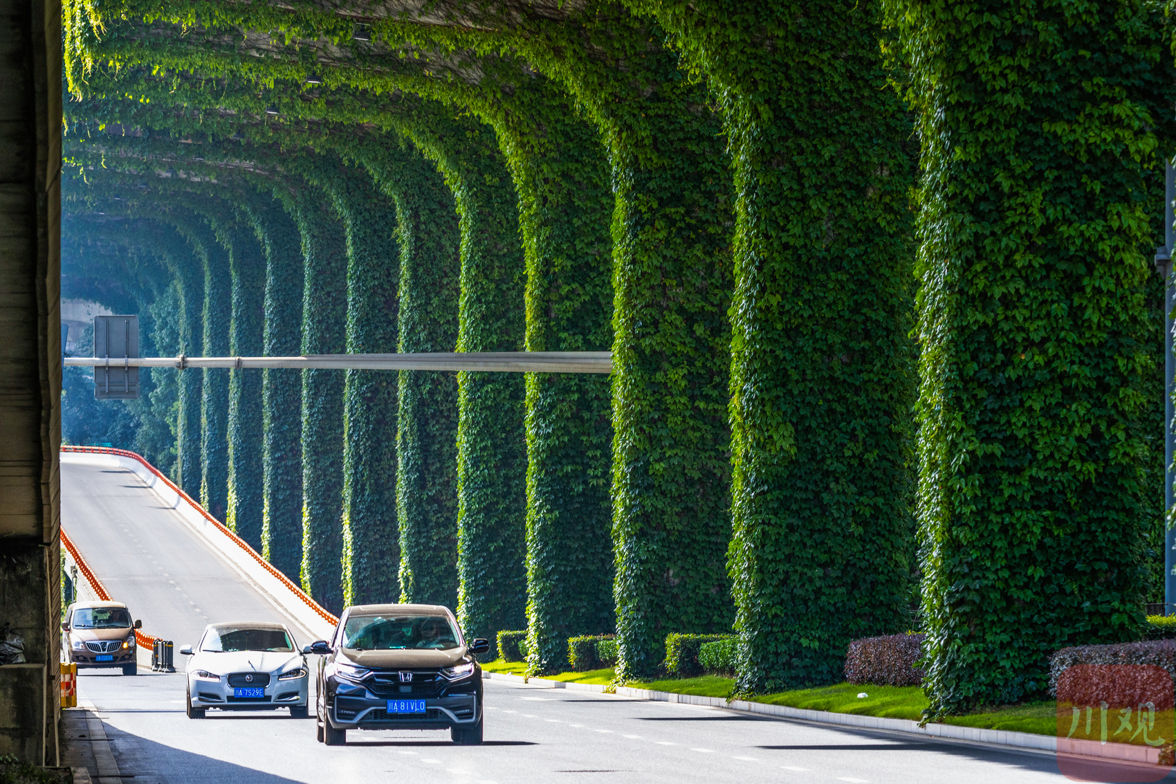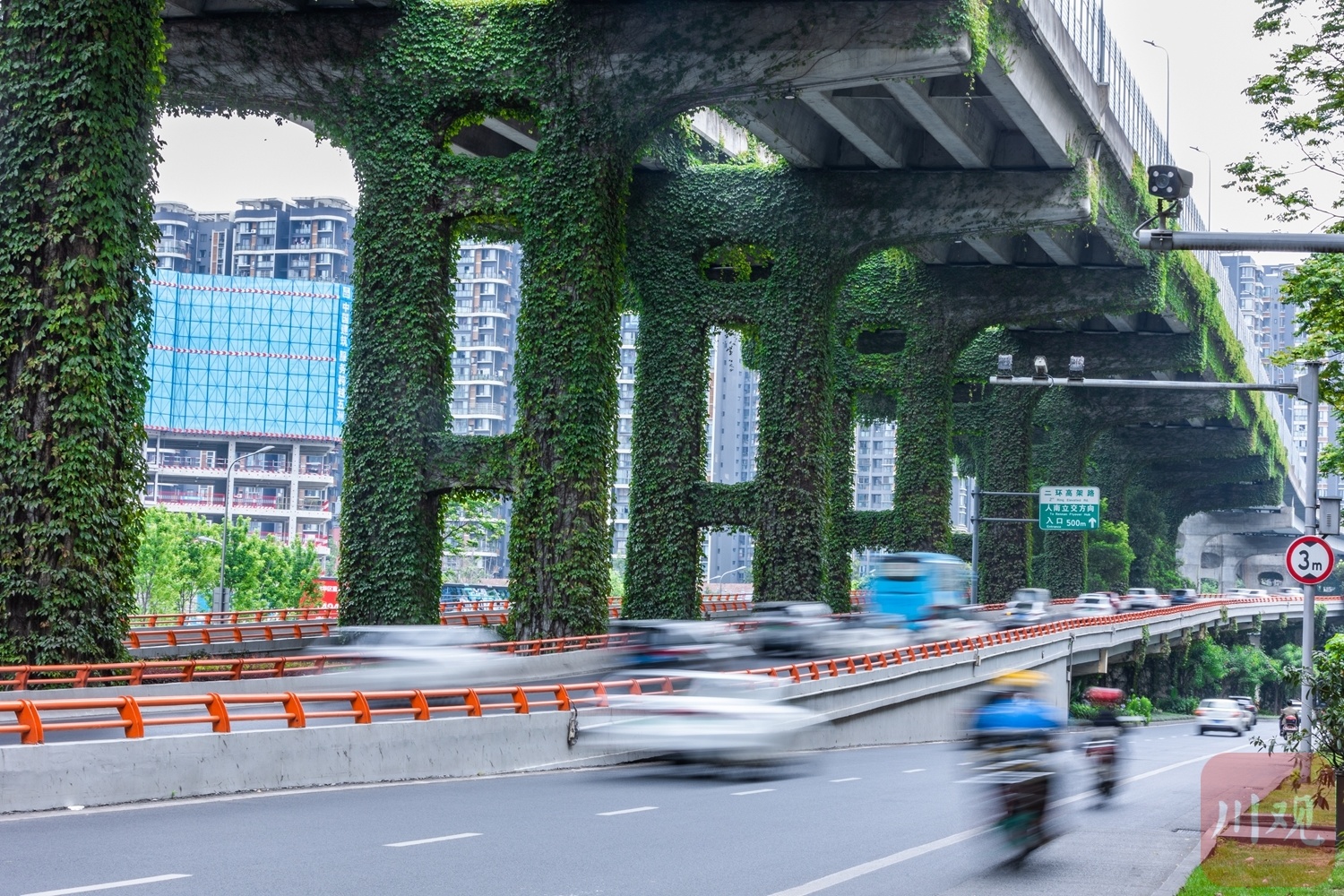 2024年夏,布滿成都二環高架橋橋墩上的“爬山虎”變綠,給成都的夏天送來了一陣清涼。