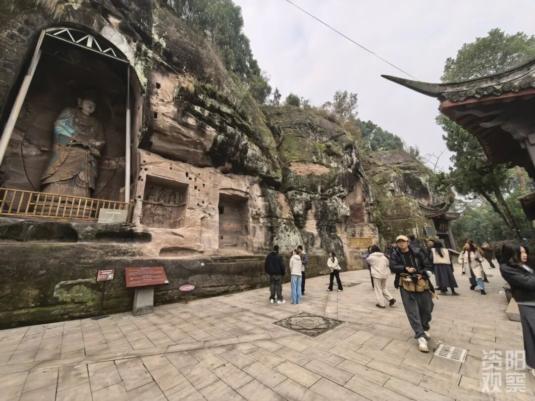 在安岳縣圓覺洞石刻景區,創作者們漫步于跨越千年的石窟藝術長廊,深入感受安岳石刻“古、多、精、美、特”的獨特魅力。