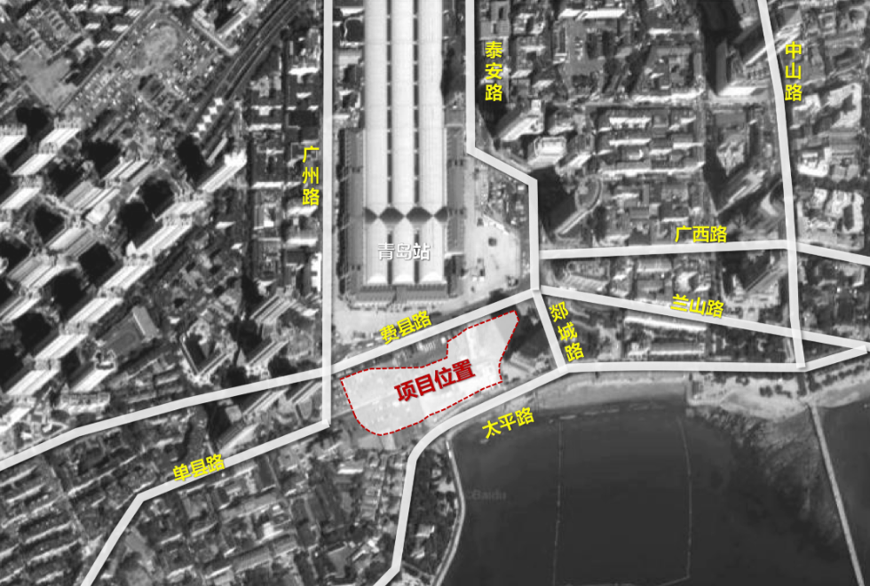 該宗地位于市南區郯城路、費縣路、廣州路、太平路圍合區域,土地總面積29678.6平方米。其中,出讓土地部分,土地面積8000平方米,規劃建筑面積8000平方米,土地用途為零售商業用地、商務金融用地;劃撥土地部分,土地面積21678.6平方米,土地用途為廣場用地。