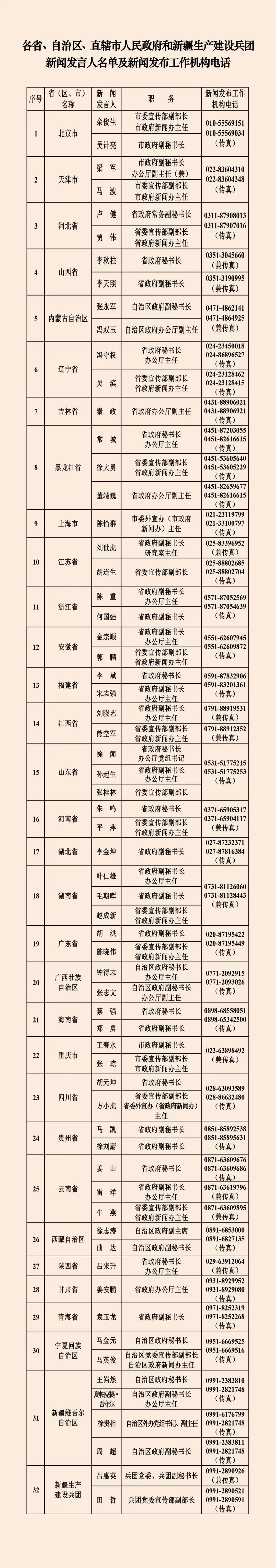 12月16日,國務(wù)院新聞辦公室官網(wǎng)公布中央國家機關(guān)和地方2026年新聞發(fā)言人名錄,名單如下: