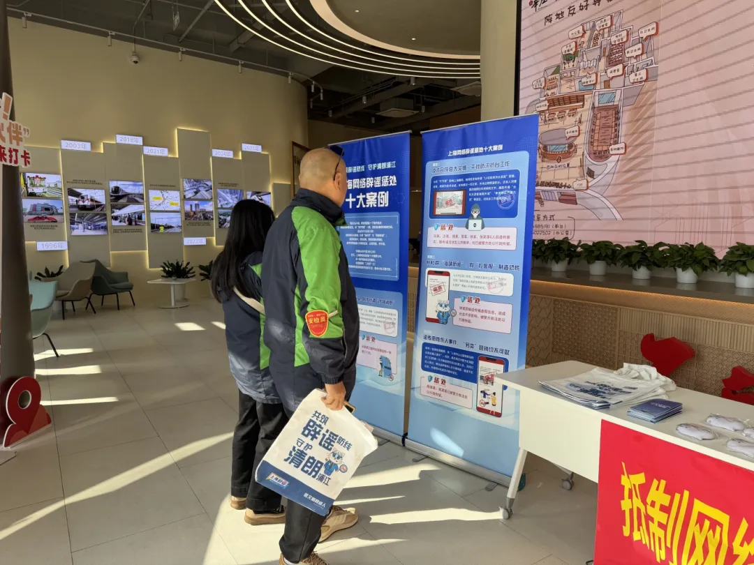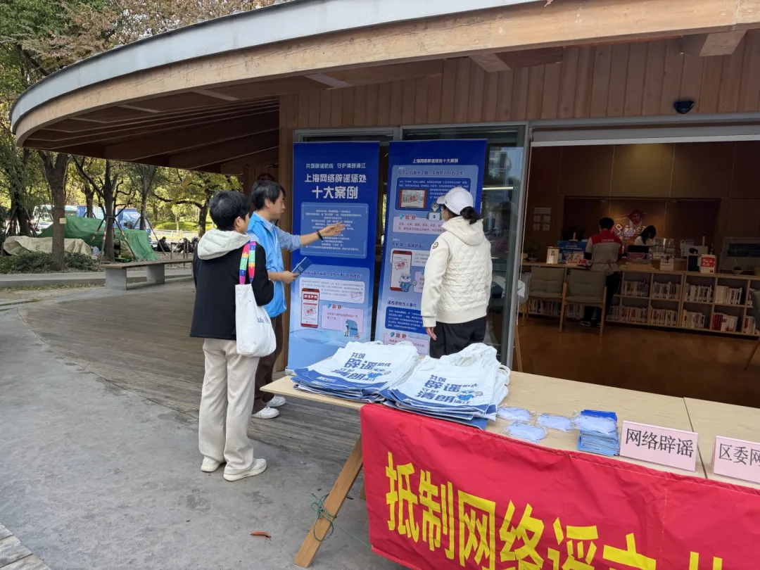 閔行區(qū)委網(wǎng)信辦在萬象黨群服務(wù)站巧妙設(shè)置了 “網(wǎng)絡(luò)辟謠”展示專區(qū)。通過設(shè)置定點(diǎn)咨詢、布置宣傳展板、發(fā)放宣傳手冊等形式,精準(zhǔn)覆蓋年輕網(wǎng)民群體,讓嚴(yán)肅的辟謠宣傳變得生動有趣。