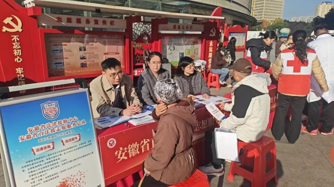 日前,安徽省直法律援助志愿服務隊在合肥市瑤海區壩上街吾悅志愿服務文化廣場,參加2025年安徽省暨合肥市國際志愿者日志愿服務交流展示活動。