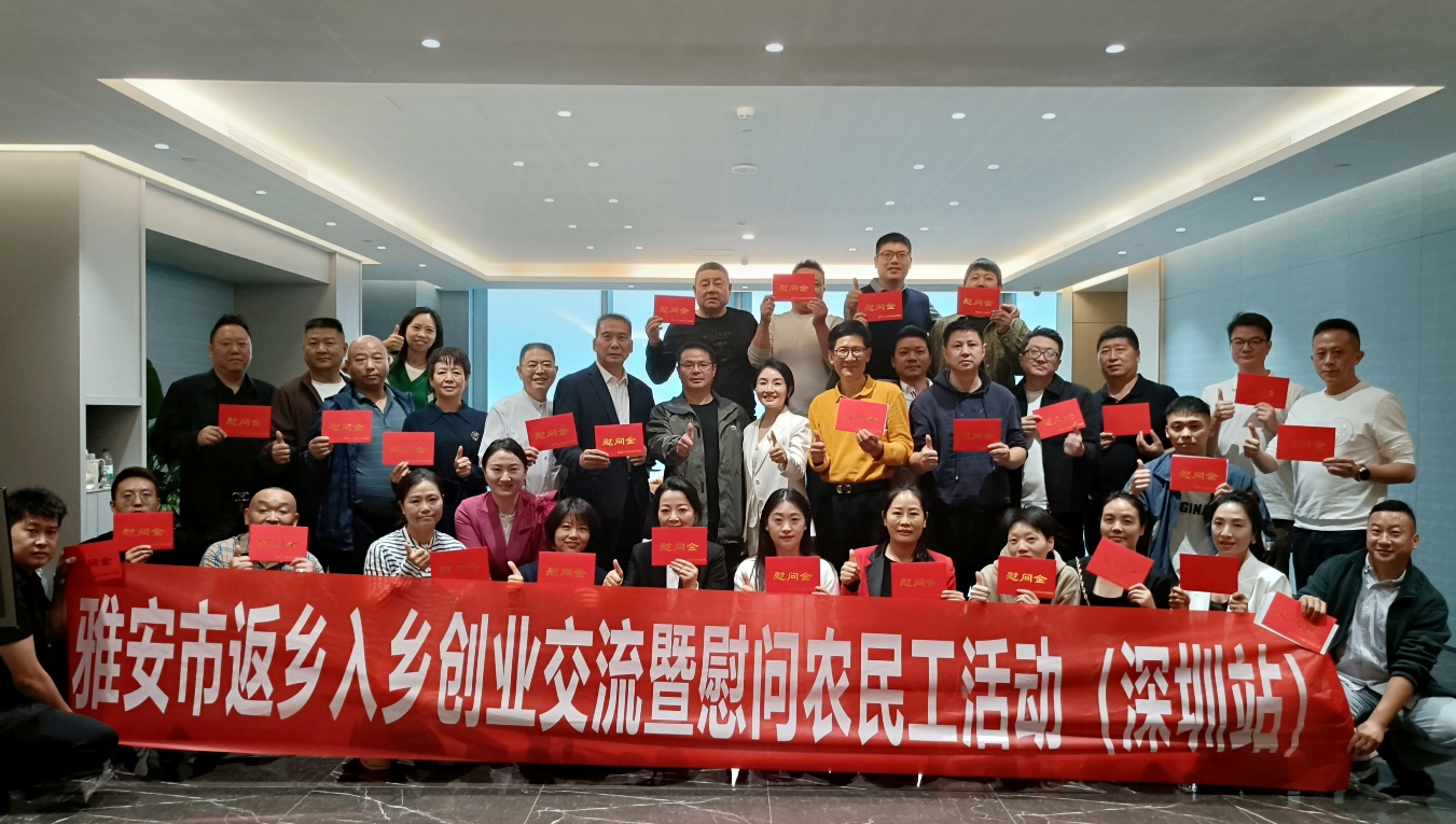 為扎實做好今冬明春農民工服務保障工作,鼓勵引導在外優秀人才返鄉創業興業,近日,雅安市赴廣東省深圳市舉辦返鄉入鄉創業交流暨慰問農民工活動。