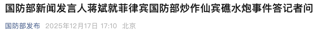 記者:12月16日,菲律賓國防部長在社交媒體平臺(tái)發(fā)表聲明,誣稱中國海上管控力量在仙賓礁附近海域?qū)Ψ茲O民采取“危險(xiǎn)且不人道”行為,否認(rèn)菲漁民持刀威脅中國海警等。請(qǐng)問中方對(duì)此有何評(píng)論?