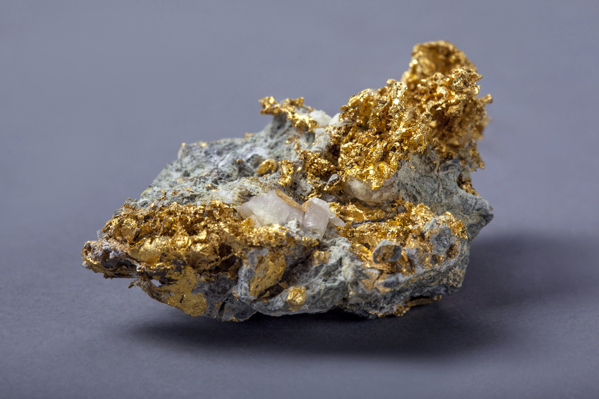 產(chǎn)自四川的自然金,主要產(chǎn)于高、中溫?zé)嵋撼梢虻暮鹗}中,或產(chǎn)于火山巖系與火山熱液作用有關(guān)的礦床中。圖片自湖南省地質(zhì)博物館