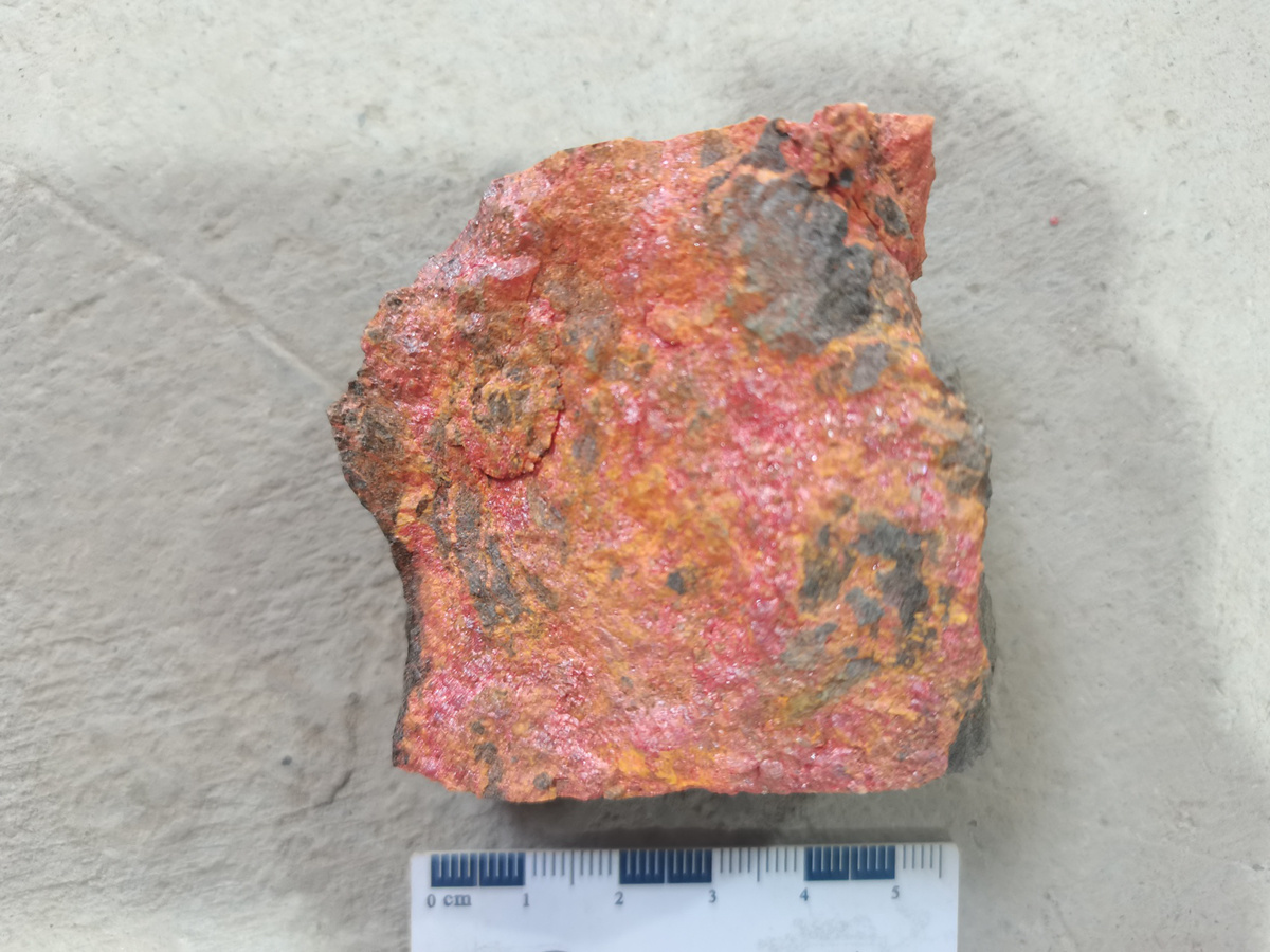 金礦石(產(chǎn)自松潘東北寨),碎粒巖黃鐵礦浸染狀分布,肉眼難見金子。 楊鵬濤供圖