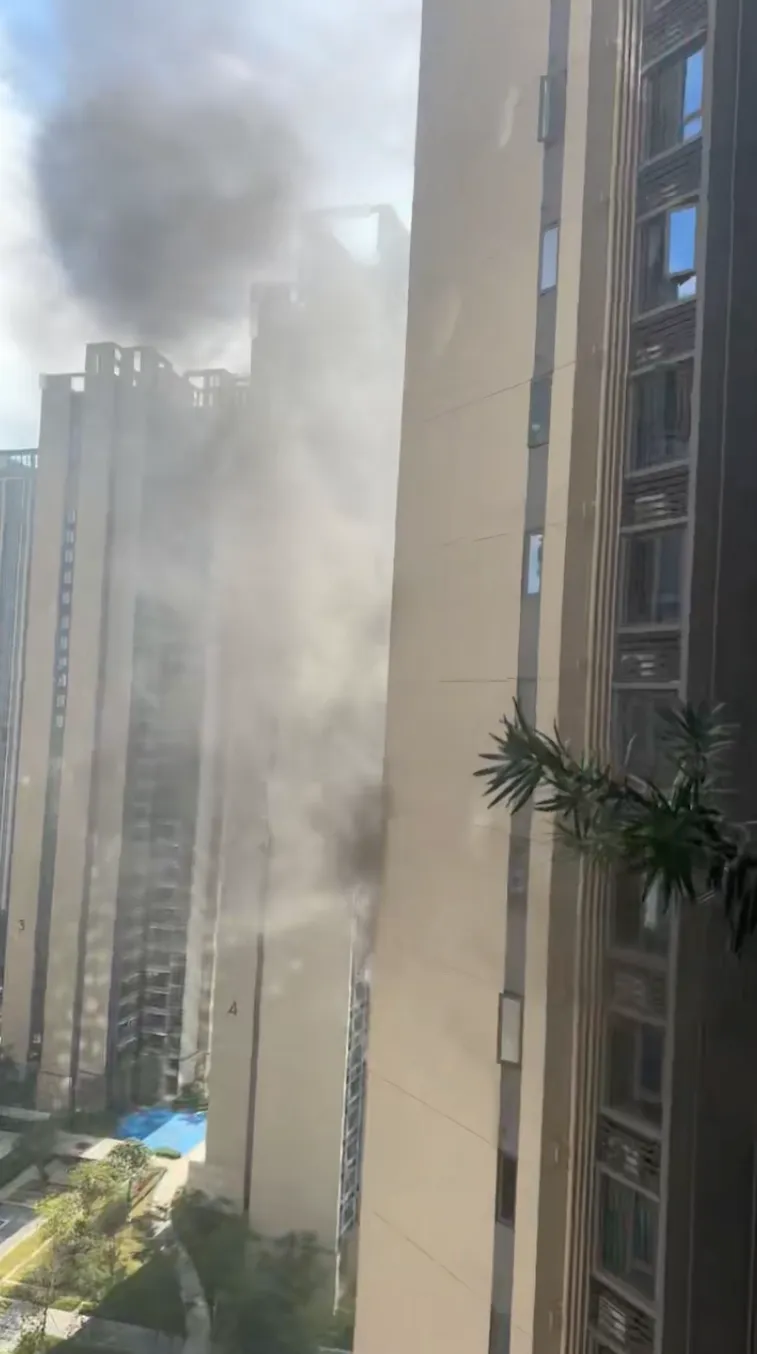 13時57分,該住戶發(fā)布的照片顯示,室內(nèi)已有煙霧冒出,并配文“已經(jīng)燒起來了,你們不走不關我的事呀”。很快,房屋開始起火,濃煙不斷涌出,并向高層蔓延。多位住戶于14時許拍攝的視頻、照片顯示,該樓棟15層一窗戶涌出大量黑煙,在小區(qū)外也清晰可見,群內(nèi)住戶紛紛驚呼“快撤離”。