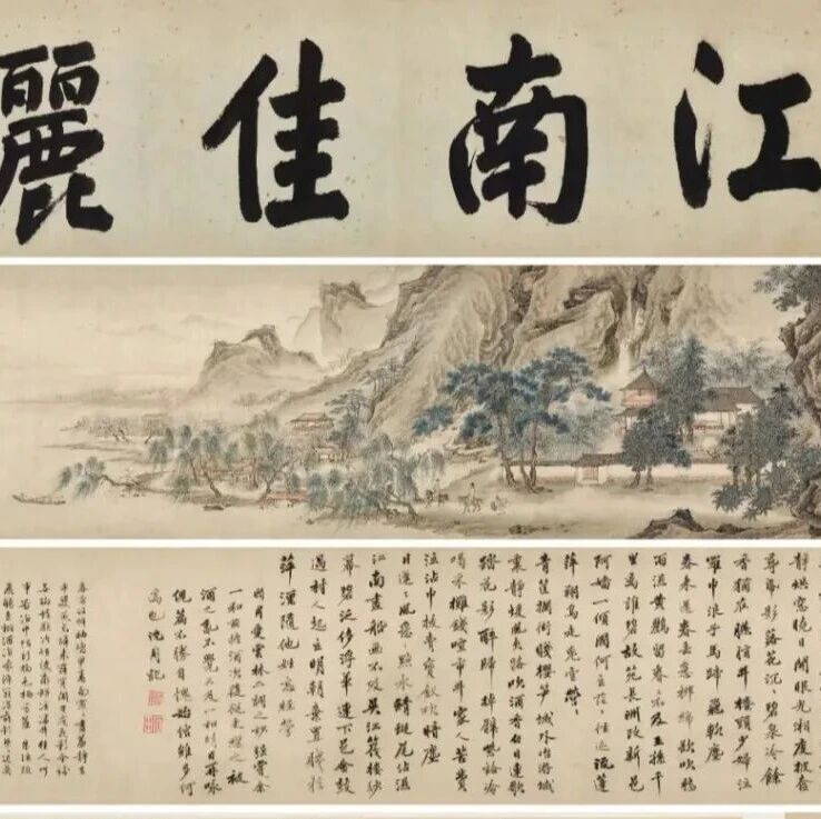 龐萊臣后人捐給南京博物院的明代仇英 《江南春》圖卷(局部),2025年出現(xiàn)在北京一拍賣公司預(yù)展中
