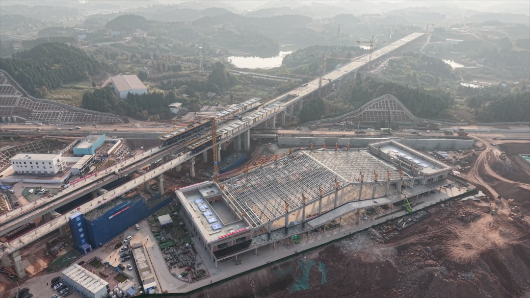 西南鐵路官微消息:12月17日,經過150小時的連續提升,600余噸屋面鋼結構網架精準提升至指定位置并完成對接,成達萬高鐵樂至站主體結構完工,正式轉入裝飾裝修與設備安裝階段,為成達萬高鐵按期通車奠定了堅實基礎。
