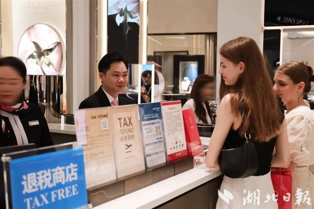外籍顧客在武漢SKP選購商品后辦理退稅手續(xù)。