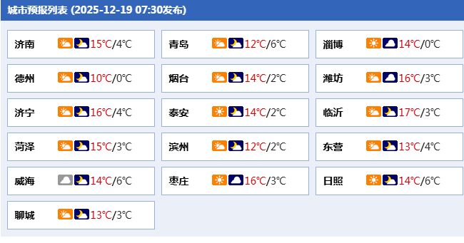 最高氣溫:魯中山區和魯西北地區11℃左右,其他地區14℃左右。
