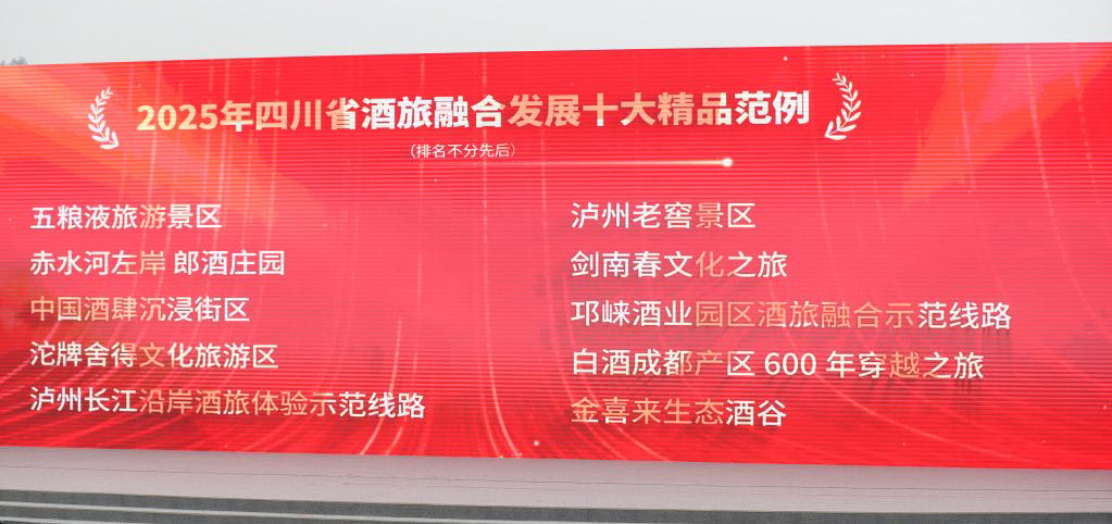 12月19日,2025年中國國際名酒博覽會在宜賓啟幕。開幕式上,“2025四川省酒旅融合發展十大精品范例”重磅發布,宜賓五糧液旅游景區、中國酒肆沉浸街區,以及金喜來生態酒谷三大景區成功入選。