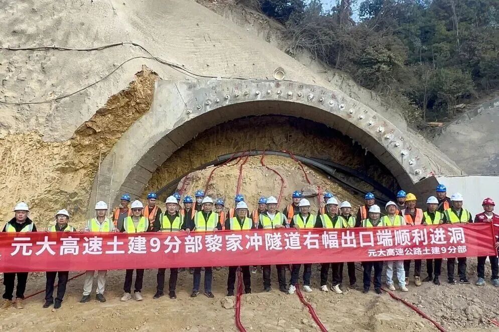 12月13日,元大高速土建九分部黎家沖隧道右幅出口端順利進洞。