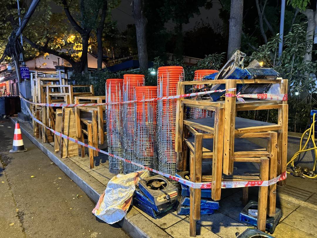 商家為冬至夜提前備好的桌椅