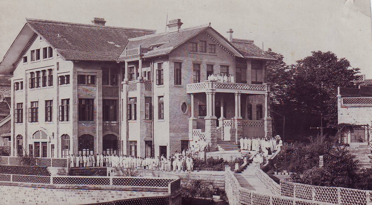 此圖為1918年建校初期的校園建筑。(自貢一中供圖)