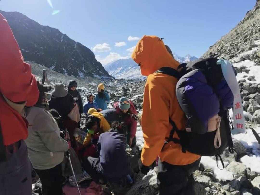 現場視頻顯示,海拔約4000米的亂石灘上,眾人圍著失去意識的亮亮緊急施救?!罢l有氧氣?”“快送下山!”呼喊聲此起彼伏。同行者為他供氧、掐人中,并用保溫毯、羽絨服包裹。王先生稱,他們用完了隨身攜帶的氧氣瓶進行施救,也有熱心路人提供了氧氣。
