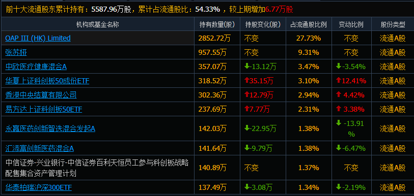 記者梳理發現,目前上述二者的前十大流通股東名單中,中歐醫療健康混合A、永贏醫藥創新智選混合發起A、香港中央結算有限公司均位列其中。
