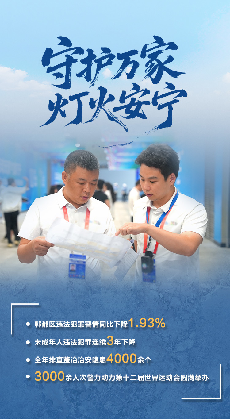 平安的維度在于家庭日常的細節(jié),也在于重大使命的擔(dān)當。第十二屆世界運動會期間,郫都區(qū)3000余人次警力聞令而動,從嚴從細落實交通疏導(dǎo)與應(yīng)急處置。與此同時,郫都區(qū)政法系統(tǒng)常態(tài)化開展“掃樓、掃街、掃院”專項行動,全年排查整治治安隱患4000余個,“重拳”整治非法金融、打擊電信詐騙,持續(xù)凈化社會環(huán)境,讓平安觸手可及。