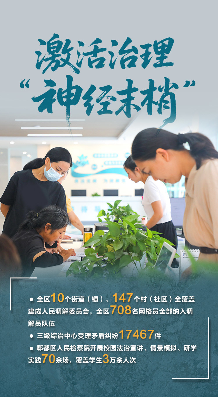 為了實現(xiàn)快速響應(yīng),郫都區(qū)在商圈、學(xué)校等重要點位組建“最小應(yīng)急單元”,建立“一點呼叫、一線響應(yīng)、一片集結(jié)”的機制。708名網(wǎng)格員化身“移動探頭”,從處置天然氣泄漏到辦理民生事項,全年依托“微網(wǎng)格”辦結(jié)事件56萬余起。郫都區(qū)人民檢察院編寫法治課程,深入校園開展法治宣講、情景模擬、研學(xué)實踐70余場,覆蓋學(xué)生3萬余人次,護航青少年健康成長。