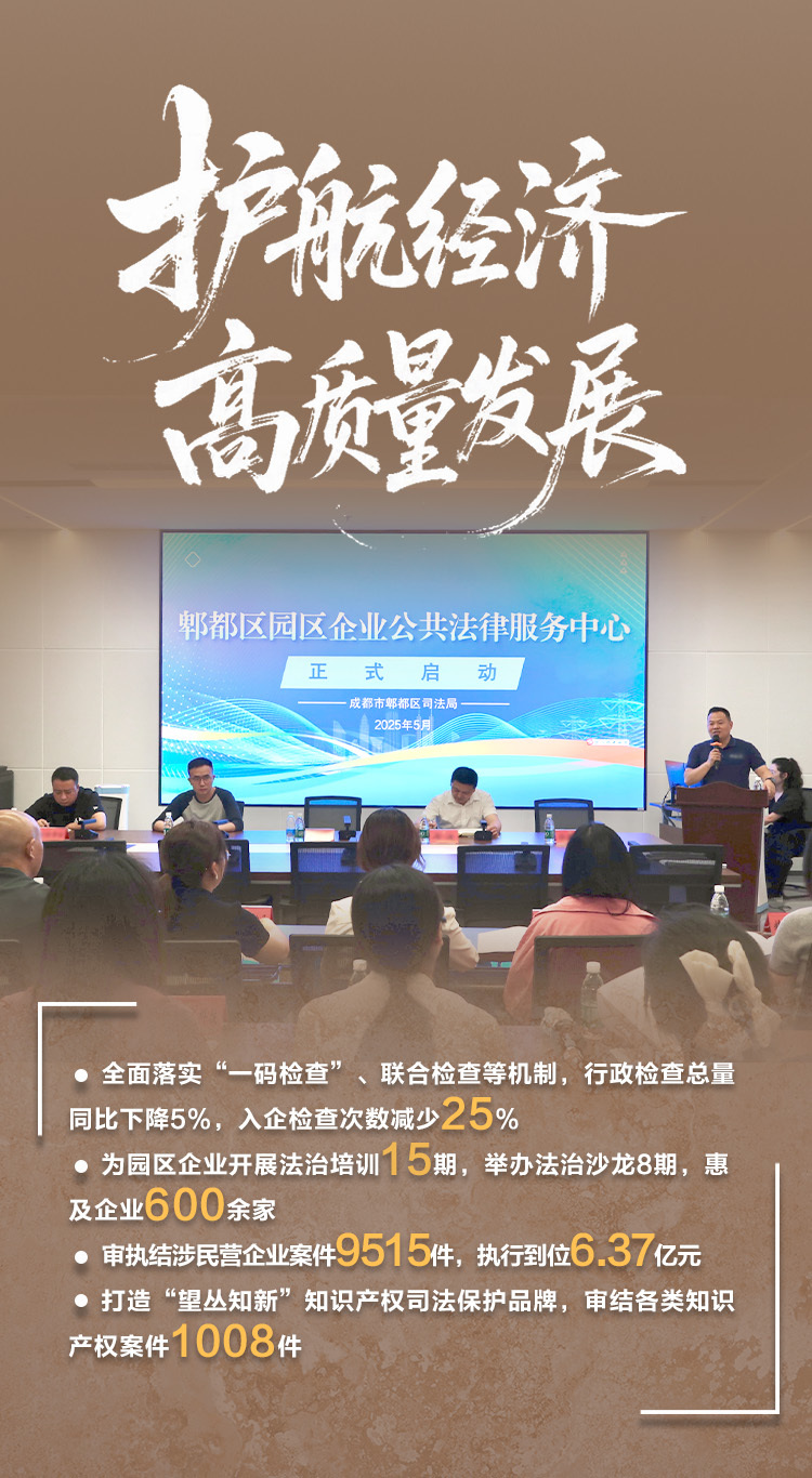 郫都區(qū)成立園區(qū)企業(yè)公共法律服務(wù)中心,5個法律服務(wù)驛站構(gòu)成“精準供給”的服務(wù)網(wǎng)絡(luò),8大類50項服務(wù)清單涵蓋法治沙龍、公證服務(wù)等方面,覆蓋600余家企業(yè)。針對民生消費痛點,郫都區(qū)還迭代升級預(yù)付式消費信用監(jiān)管平臺,引入保險保障,有效減少消費糾紛。從知識產(chǎn)權(quán)保護到項目落地保障,法治已成為郫都區(qū)的核心競爭力之一。