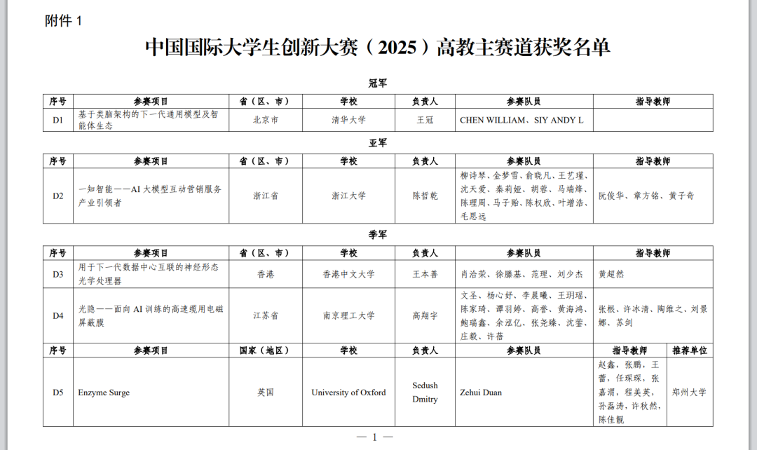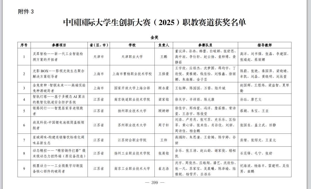 2026年2月28日,教育部發(fā)布《關(guān)于公布中國(guó)國(guó)際大學(xué)生創(chuàng)新大賽(2025)獲獎(jiǎng)名單的通知》。