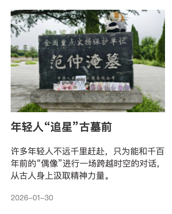 ??張居正的改革魄力、蘇軾的豁達胸懷、辛棄疾的報國熱忱、徐霞客對大自然的熱愛……在憑吊古人的過程中,年輕人也從跨越時空的精神對話中汲取了力量。