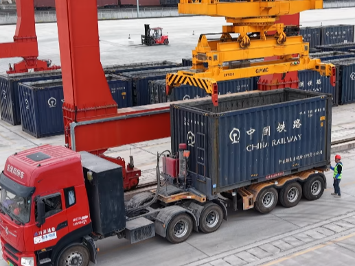 在金鐳重工的生產(chǎn)車間里,智能機(jī)床高速運(yùn)轉(zhuǎn),身著工裝的工人熟練操作著智能設(shè)備,一件件精密曲軸毛坯在流水線上快速成型;在內(nèi)江國際鐵路港,集裝箱在龍門吊的精準(zhǔn)操作下,穩(wěn)穩(wěn)落在貨運(yùn)列車上。