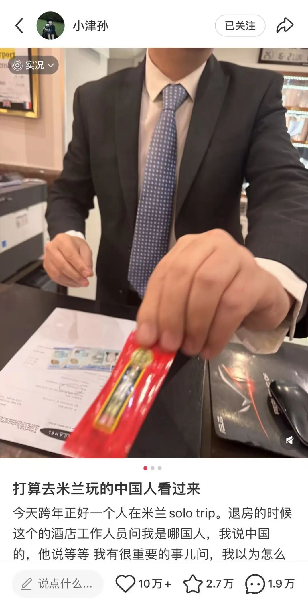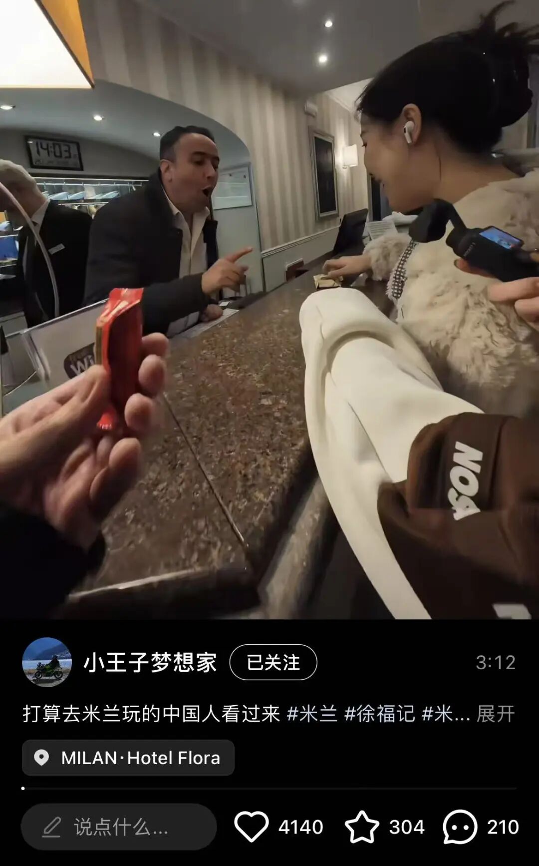 2026年春節期間,孫同學(博主@小津孫)在意大利米蘭佛羅拉酒店退房時,被前臺工作人員叫住。對方得知她來自中國后,掏出一袋已壓扁、帶破洞的糖果包袋,懇請她下次再來米蘭時幫忙捎帶同款糖果。于是博主將這段暖心經歷發到網上,意外引爆全網關注,一場自發的“跨國送糖接力” 就此開啟。