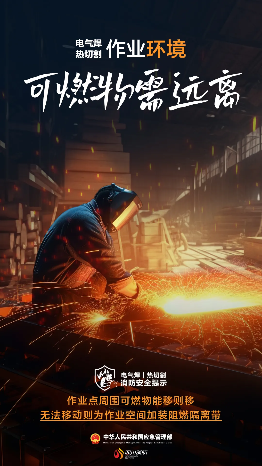 要有安全防火距離,作業前清理周邊可燃和易燃易爆物。