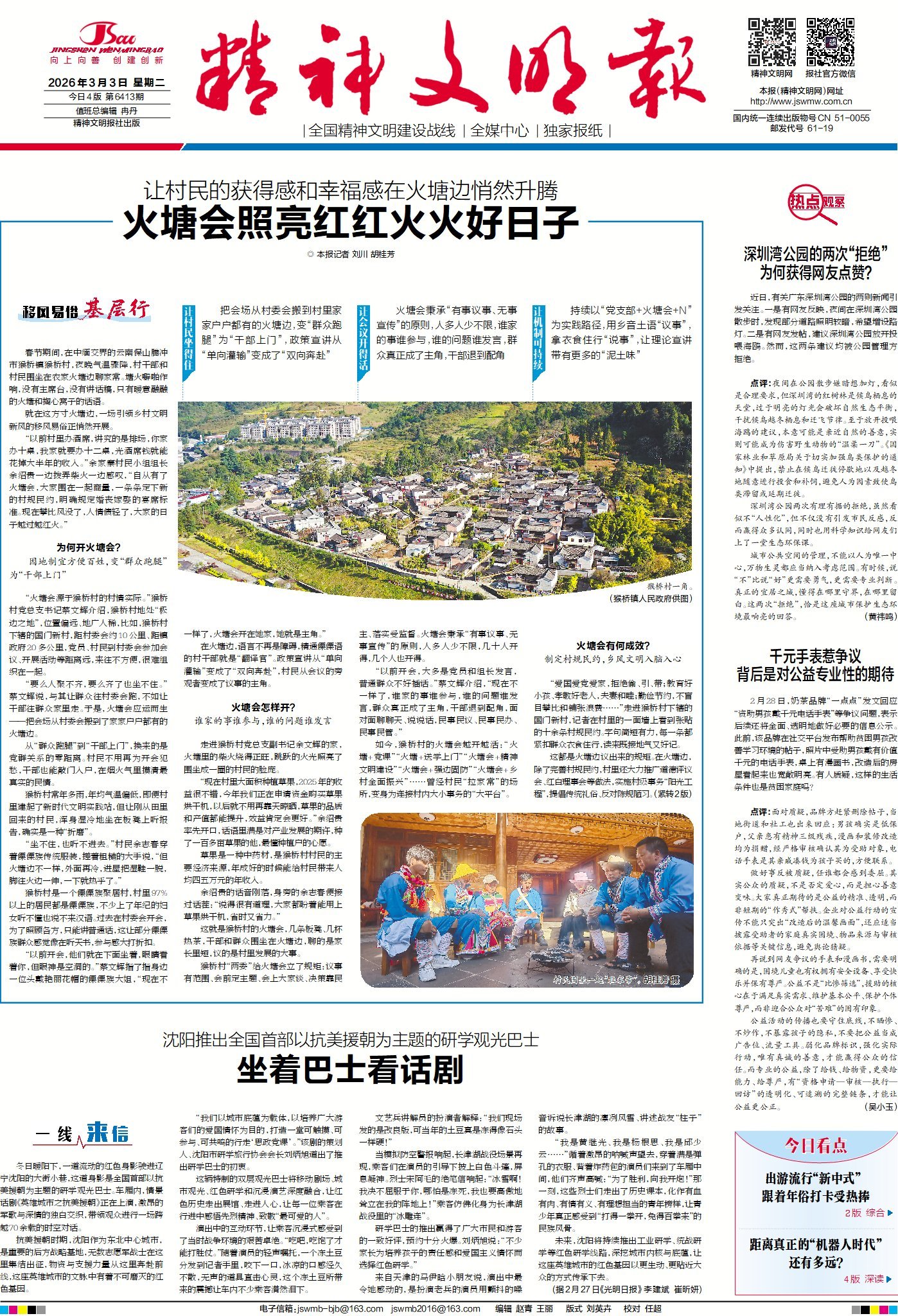 春節期間,在中緬交界的云南保山騰沖市猴橋鎮猴橋村,夜晚氣溫驟降,村干部和村民圍坐在農家火塘邊聊家常。塘火噼啪作響,沒有主席臺,沒有講話稿,只有暖意融融的火塘和掏心窩子的話語。就在這方寸火塘邊,一場引領鄉村文明新風的移風易俗正悄然開展。請關注今日1版《移風易俗基層行》欄目,看猴橋村如何以一場場火塘會照亮群眾紅紅火火好日子。