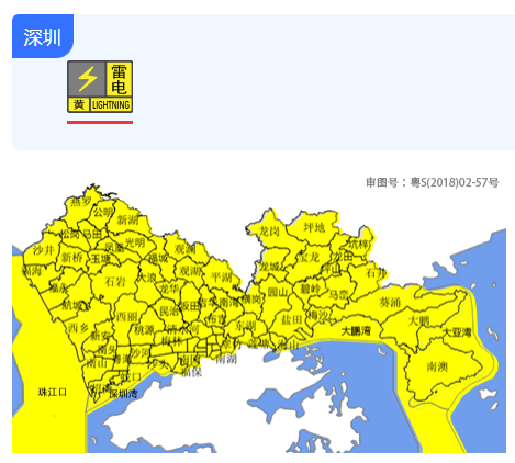 【深圳市雷電預警信號】深圳市氣象臺于2026年3月2日16時35分發布全市雷電預警信號,預計2小時內全市將受雷電影響。請市民停留在安全地方。