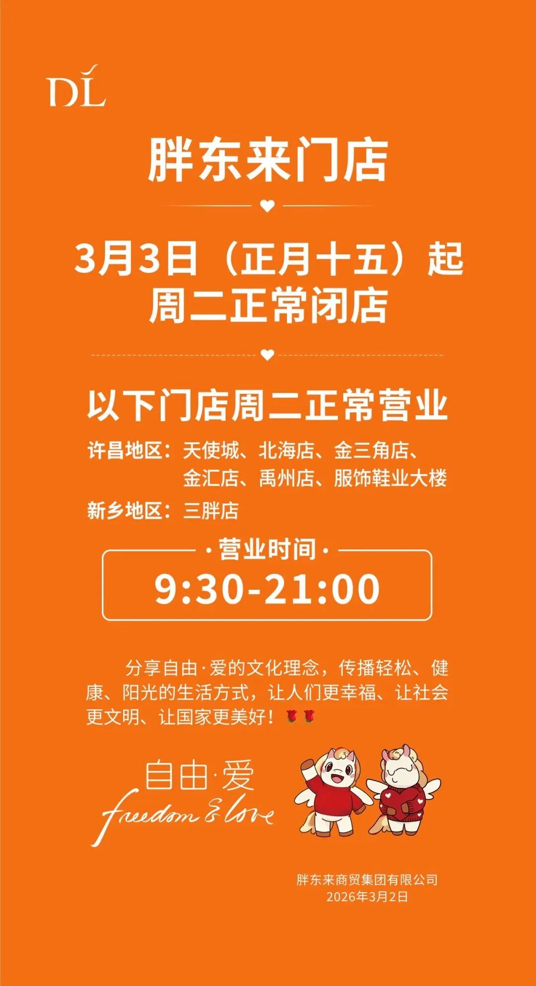 3月2日,胖東來商貿集團發布公告,宣布自2026年3月3日(正月十五)起,旗下大部分門店將恢復周二閉店制度,僅保留部分門店正常營業,以保障市民消費需求。