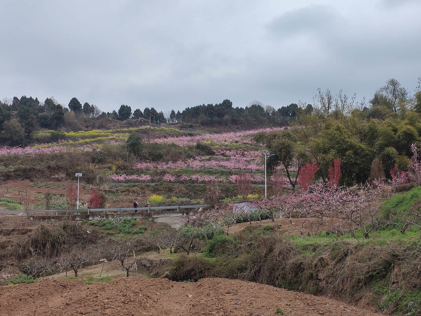 龍泉山上盛開的短低溫需冷量桃花。