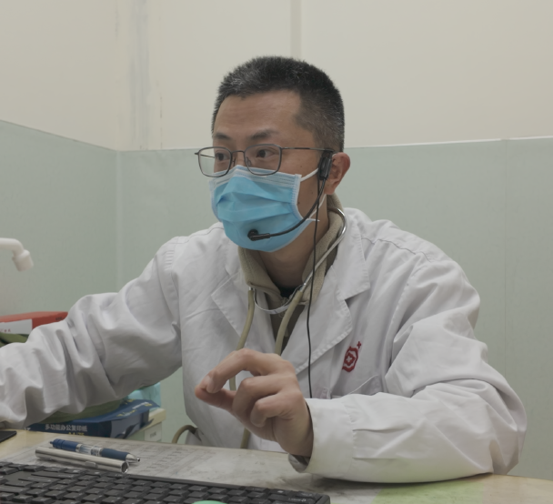 作為一名“80后”,潘異的穿著和同齡人一樣隨性舒適,但配上一頭灰白相間的頭發(fā)和一身白大褂,腳下高幫亮面的機(jī)車靴給他的年齡增添了幾分神秘感,但后來才知道,30塊網(wǎng)購來的機(jī)車靴不是??幔灰?yàn)橛袝r(shí)會(huì)接診到嘔吐的小患兒,可能會(huì)被殃及,“這樣好打理,絕不能耽誤我為下一個(gè)小朋友看病。”上一秒還在用當(dāng)?shù)胤窖园参考议L“娃兒沒事,莫慌”,下一秒聽到特定咳嗽聲,整個(gè)人瞬間繃緊,眼神銳利,在鏡片下閃過一道光。那種轉(zhuǎn)變,像按下了某個(gè)隱形開關(guān)。