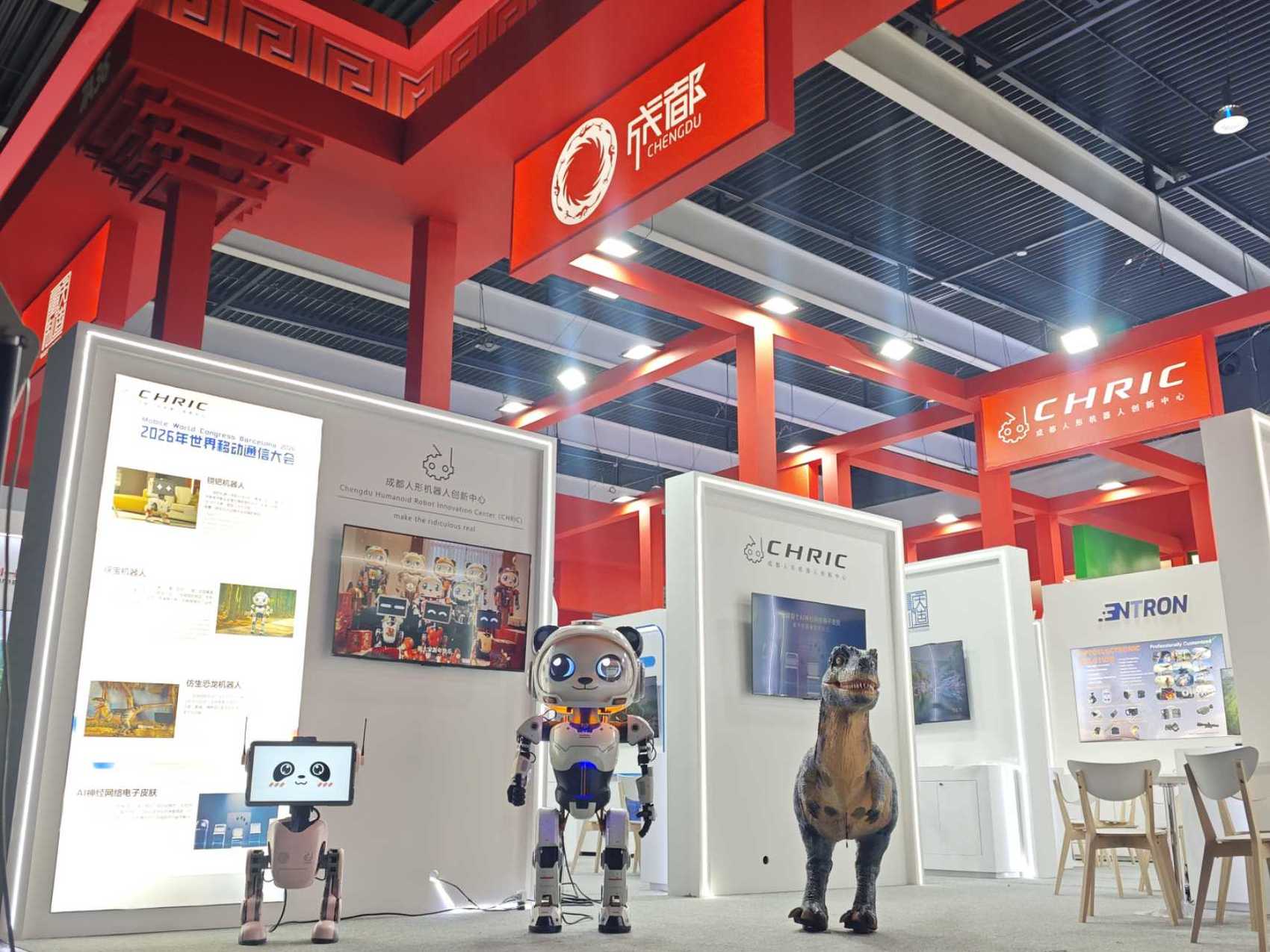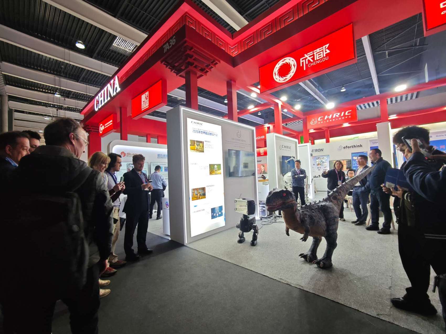 展會(huì)現(xiàn)場(chǎng),位于中國(guó)館核心區(qū)的創(chuàng)新中心展位人氣滿滿,4款代表性“成都造”產(chǎn)品尤為亮眼: 已廣泛應(yīng)用于文商旅體場(chǎng)景、搭載全棧自研“最強(qiáng)大腦”的镋鈀機(jī)器人;將國(guó)寶大熊貓萌趣形態(tài)與人形機(jī)器人技術(shù)深度融合的“錦寶”;可實(shí)現(xiàn)雙足自由行走、活靈活現(xiàn)的仿生恐龍機(jī)器人;以及擁有全球領(lǐng)先感知性能的AI神經(jīng)網(wǎng)絡(luò)電子皮膚。