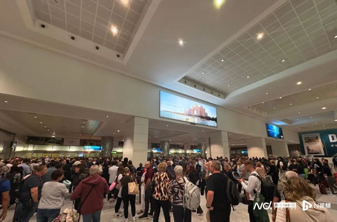 他在機(jī)場(chǎng)坐了兩個(gè)小時(shí)后,顯示屏上出現(xiàn)航班延誤通知。當(dāng)天16時(shí)左右,阿聯(lián)酋宣布關(guān)閉空域。出關(guān)已是晚上20時(shí),“大廳堆滿了行李箱,找箱子特別費(fèi)勁。”