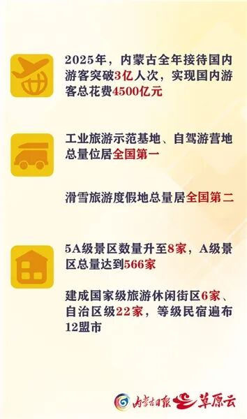 數據說話,最有分量。2025年,內蒙古全年接待國內游客突破3億人次,實現國內游客總花費4500億元。