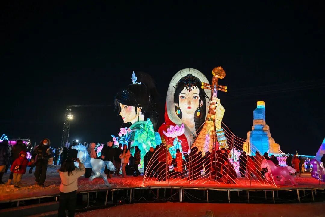 作為“2026來內蒙古過大年”活動主會場的呼和浩特市大黑河軍事文化樂園,占地超1萬平方米的巨型冰雕群與20組自貢彩燈“白日剔透,夜晚璀璨”,隨手一拍即是“冰雪大片”。