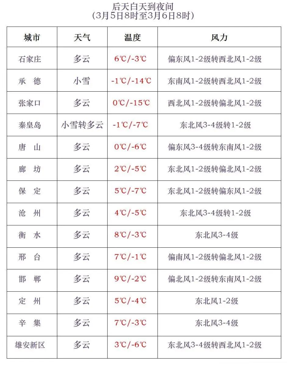5日夜間到6日,承德東部、唐山北部、秦皇島北部陰有小雪或零星小雪轉(zhuǎn)晴,其他地區(qū)晴間多云。
