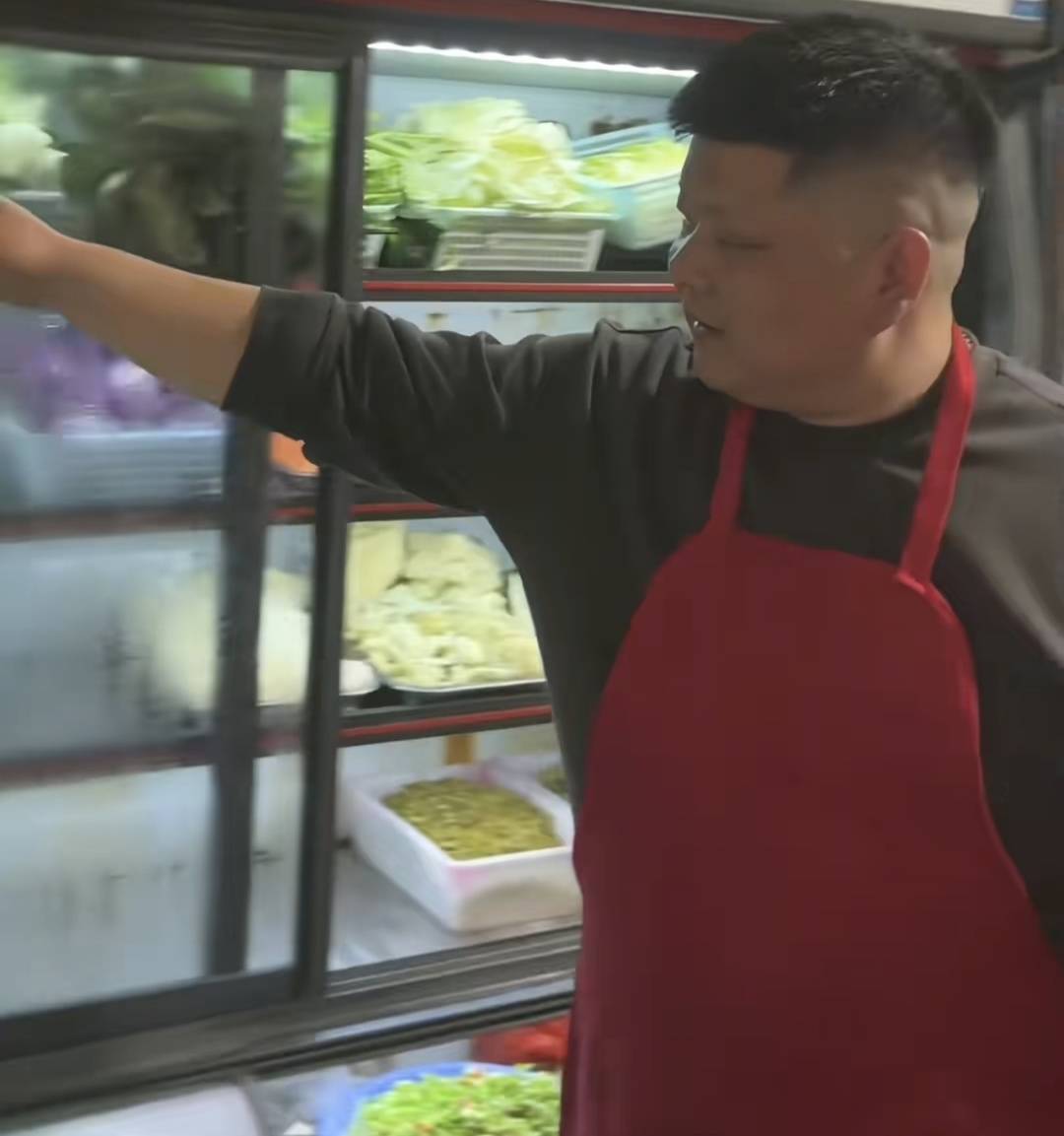 江西小炒店老板在備菜柜前。視頻截圖